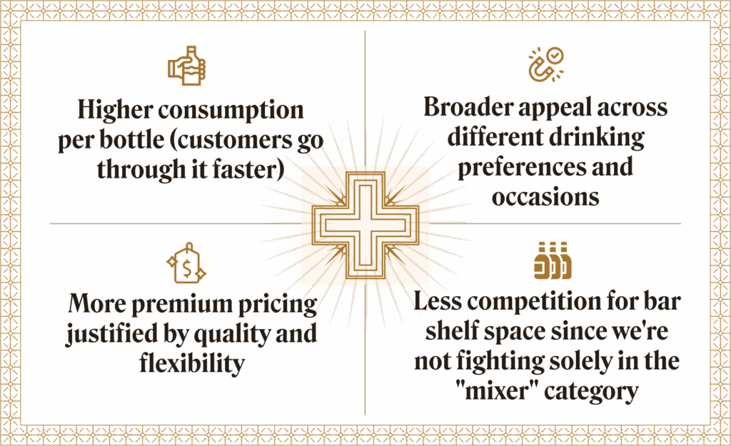 We're disrupting the $6.5B craft liqueur and aperitif category with a more versatile alternative to Aperol - one that works neat, mixed, or as a shot, driving faster bottle consumption and premium pricing.